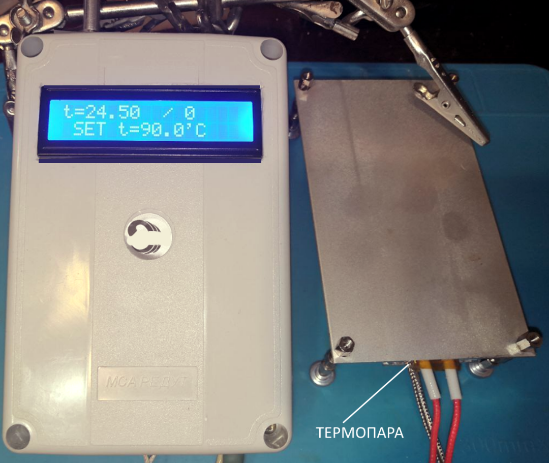 Для контроля температуры стола используется термопара К-типа, её следует разместить в термостоле в непосредственной близости от нагревателя.