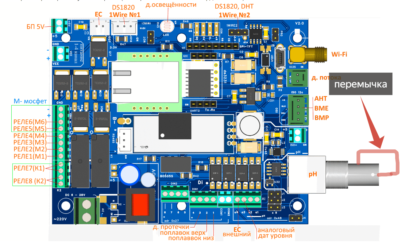 Устанавливаем уровень смещения операционного усилителя. Для этого замыкаем коаксиальный вход для зонда pH (смотри на рисунок)