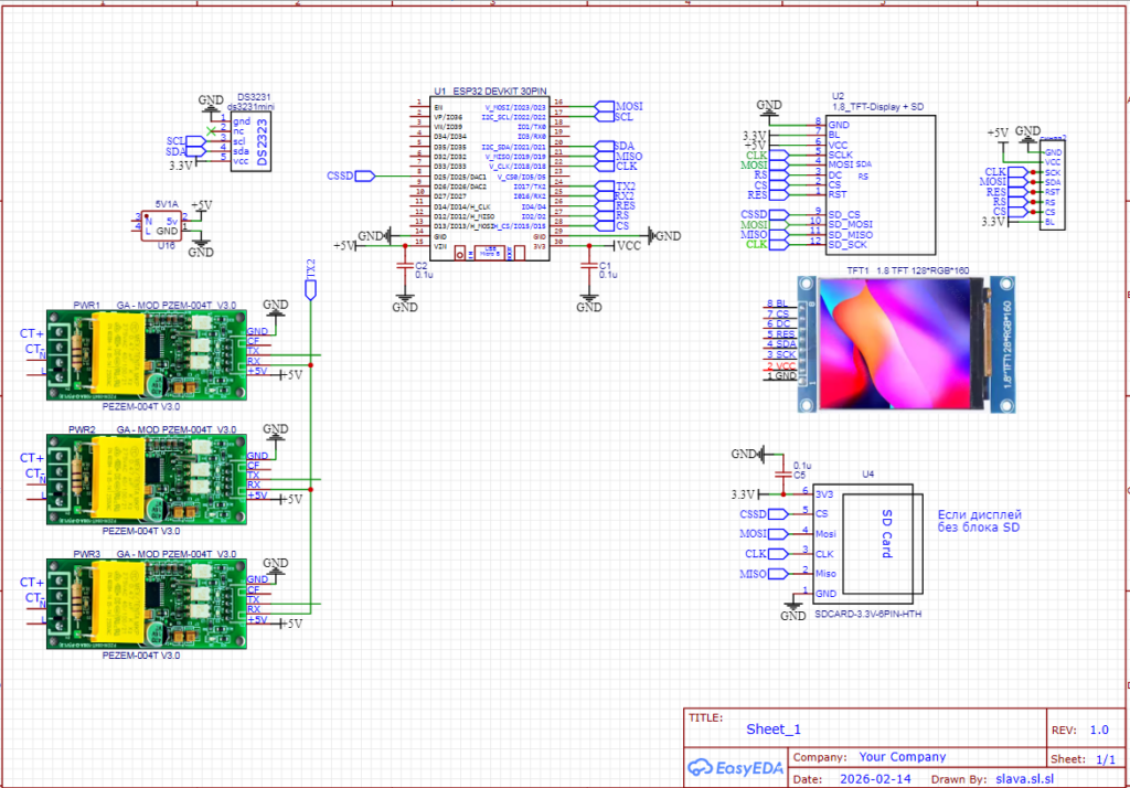 В качестве измерителя используется модуль PZEM-004T V3 (3шт), который гальванически развязывает измеряемую линию и контроллер.